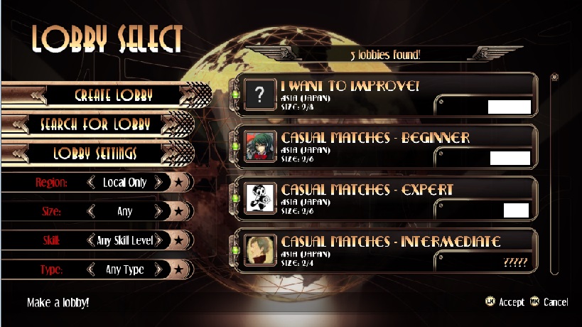 ここではレギオン(地域)とスキルレベル(実力)を選択