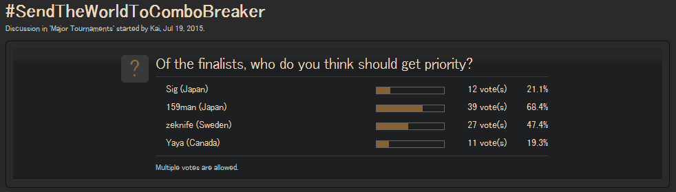 目標額は$2000でまだ未達成となっていますがこれは2人分の額であり、すでに$1000を越えているため159manさんのコンボブレイカー招待は確定となったようです