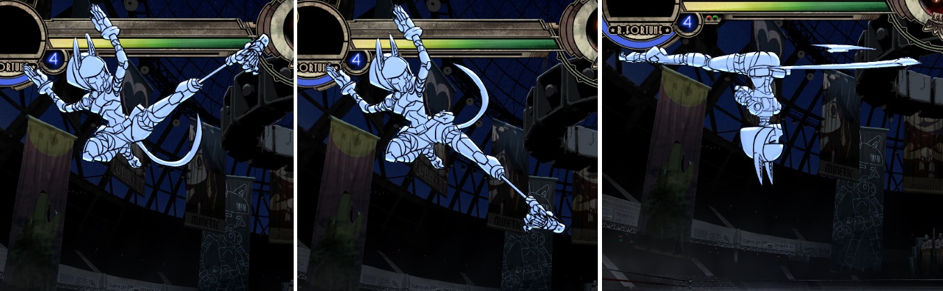 移動性能:ジャンプ1回、空中ダッシュ可能(フィリアの空中性能と同じ)