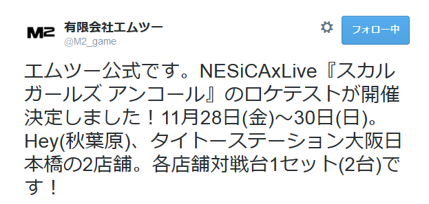 - 2014-11-20 ネシカ版スカルガールズアンコールのロケテスト!