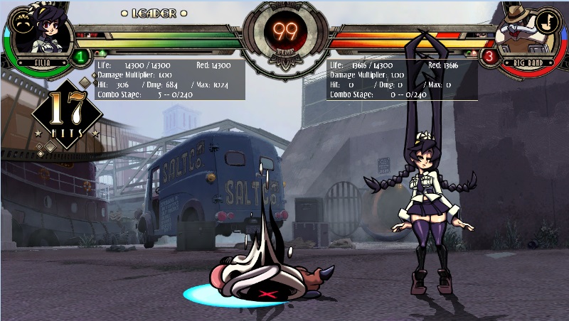 スカルガールズの通常投げコマンドは【LP+LK】ですが